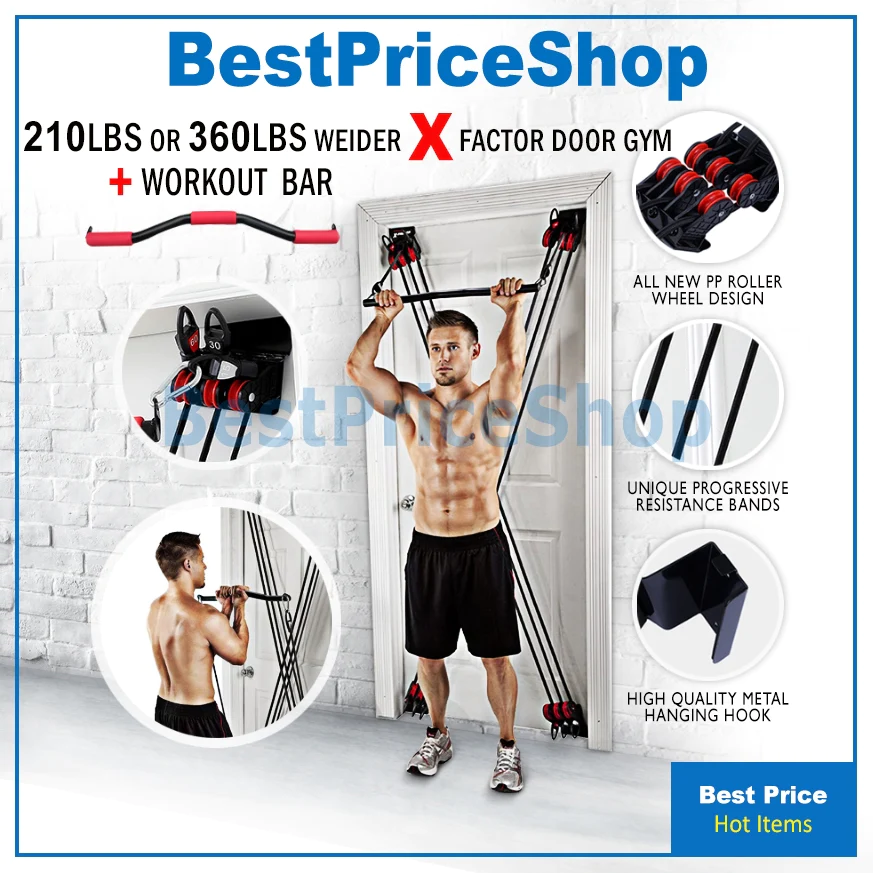- ️♂️Resistance: This X Factor door gym comes with over 110kg level resistance. It works by joining all three bands on each side.
